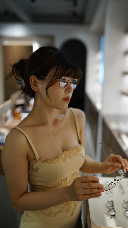 很少见模特朋友戴上眼镜的样子,这次的机会正好让我见识一下,感觉戴了眼镜更加好看呢,不如以后自备一副眼镜用来拍照吧~