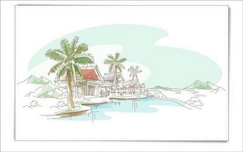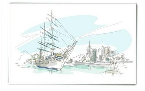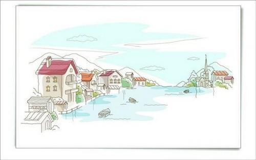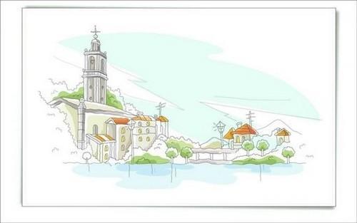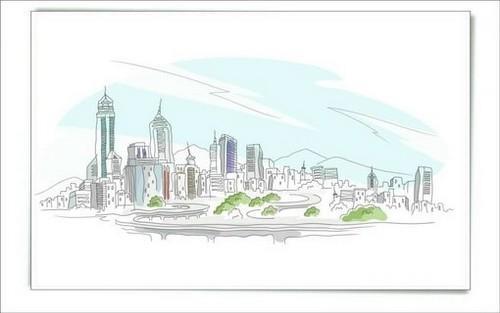 清新淡雅的手绘城市简笔画