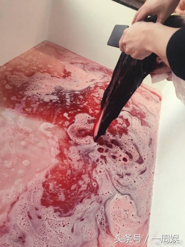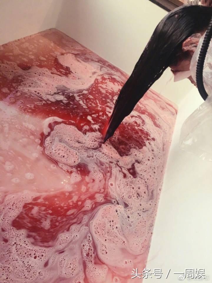 其实小编也不知哦,好像应该是在染头发吧。红红的水,还好是大白天,要是晚上的话,得吓到多少宝宝!
