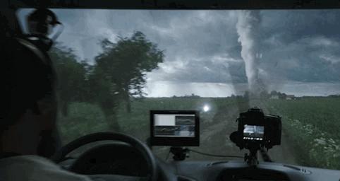 比如镜头由车内的手持摄像机对焦到车窗外,龙卷风近在咫尺: