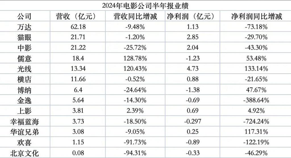 毒眸整理了 13 家电影行业上市公司的财报数据,以一窥上半年整个市场的实际效益。