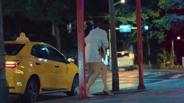 男生嘴上嫌弃,但还是一边照顾她,一边抬手叫出租车。