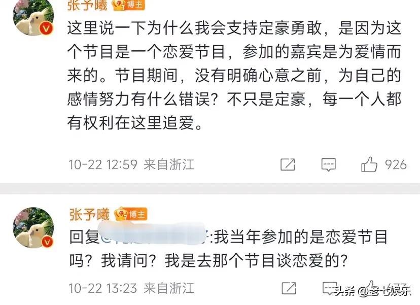 不过张予曦也曾回应过一年级的争议,张予曦称:我当年参加的是恋爱节目吗?我是去谈恋爱的吗?姐说的对!什么样的节目就该做什么样事的 ,而且不管当初怎么样,都过去这么久了,一句轻描淡写的节目效果,就上热搜,不至于吧!