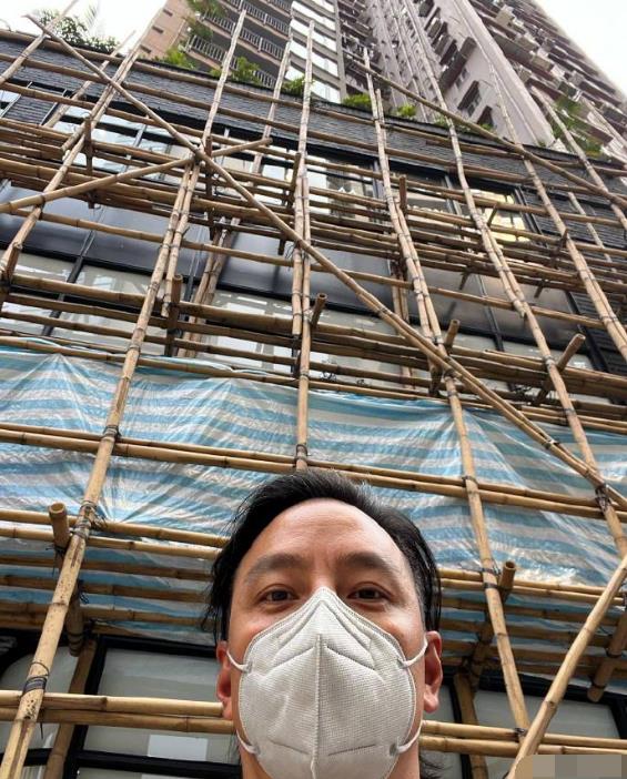 吴彦祖和香港的高楼大厦合影。