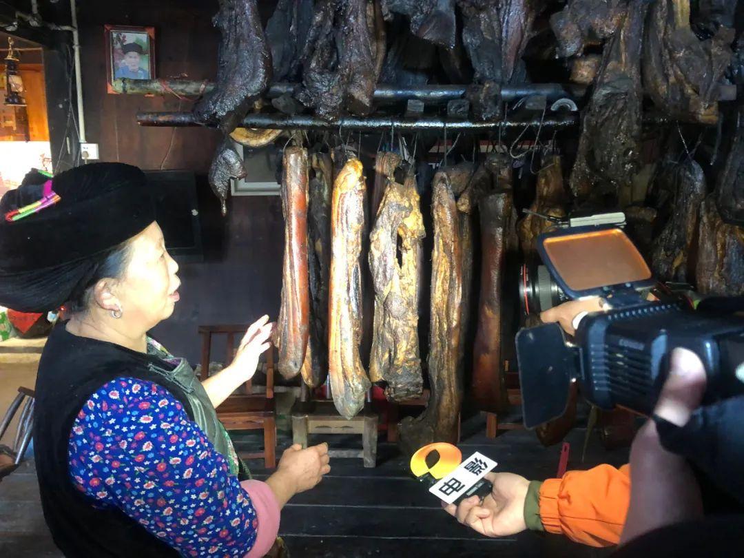 ▲十八洞村村民为湖南电影频道的记者展示自己家在脱贫后发生的变化