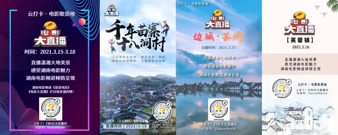 为庆祝中国共产党诞辰一百周年,加强主流宣传,聚焦新时代的湖南发展故事,湖南电影频道整合全频道传播资源,积极策划了多个专题报道活动。3月15日-18日,湖南电影频道《电影大直播》及《说说电影》团队以“湖南省内电影取景地”为视角,紧密推出“云打卡·湖南电影取景地”系列网络直播活动和电视节目,带领观众在感受电影魅力的同时见证战贫伟大实践和时代发展成果。