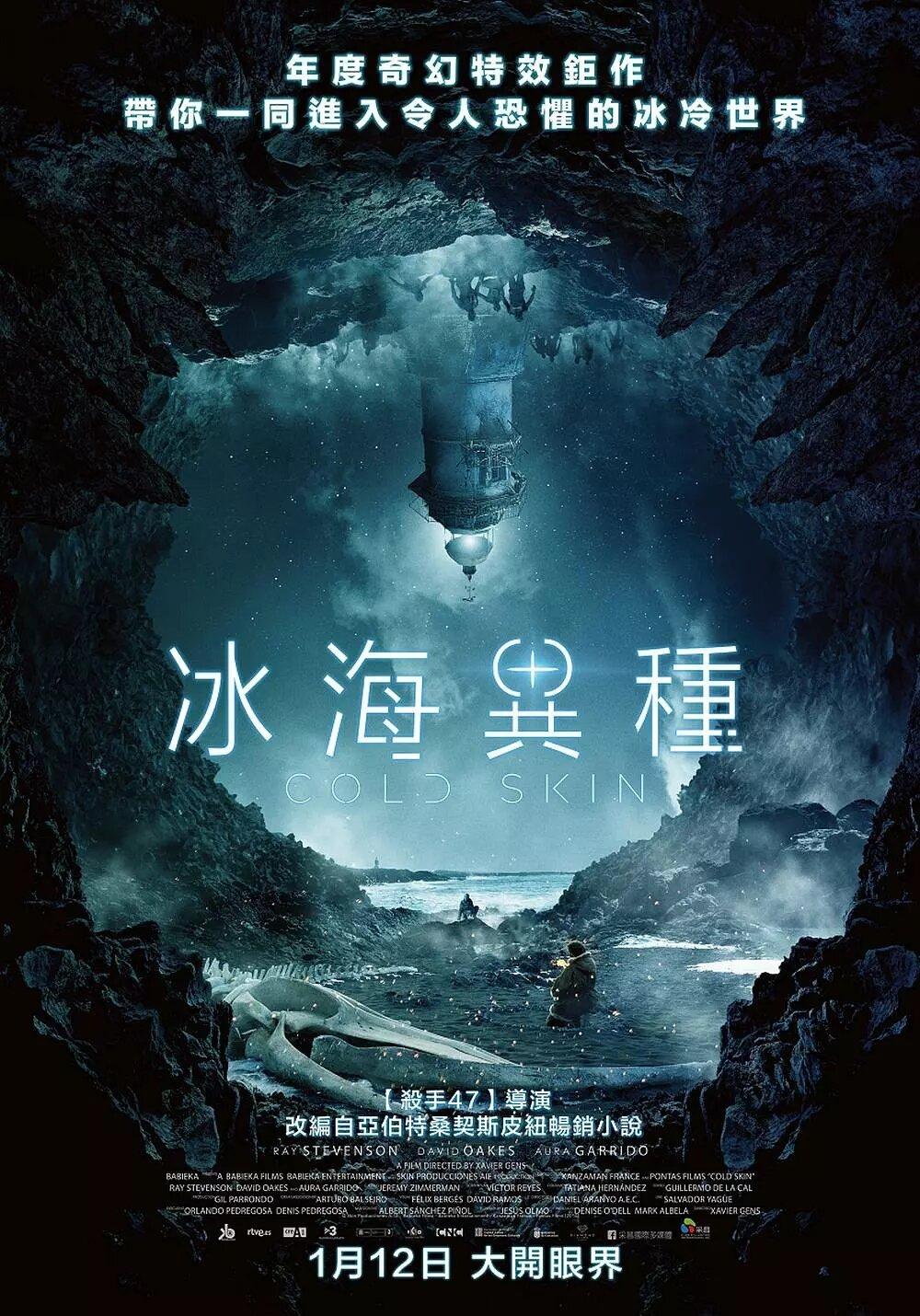 三、《冰肤传说》,又名:冷皮、冰海异种,导演: 泽维尔·吉恩斯,西班牙、法国科幻/惊悚/冒险电影,2017年上映。剧情是这样的:1914年第一次世界大战前夕,一名气象学家被派往南极孤岛上做气候观测。然而他很快发现,岛上除了他和一个疯疯癫癫的灯塔员,还有其它生物的存在...
