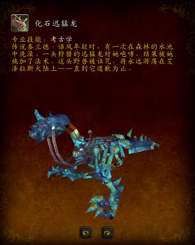 化石迅猛龙-在85年代,需到处飞行,通过挖化石挖掘场获得,是考古技能中最容易获得的坐骑。