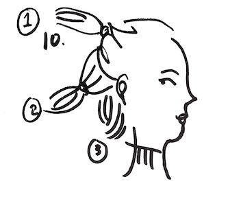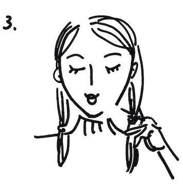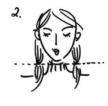 将头发两边平均分成两束,扎起两个辫子。头绳的位置要水平(除非你想剪不对称的,那也很好看)