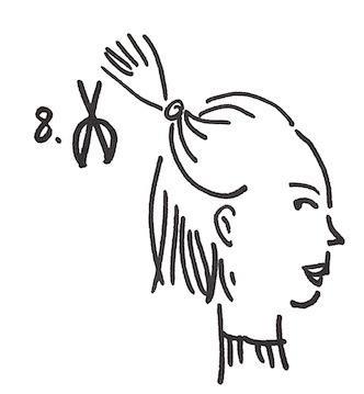 沿着头绳上方,齐齐剪下