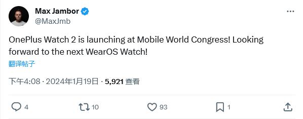 IT 之家 1 月 20 日消息,消息源 Max Jambor 近日发布推文,表示一加将出席 MWC 2024 大展,推出 OnePlus Watch 2,将搭载 WearOS 4 系统。