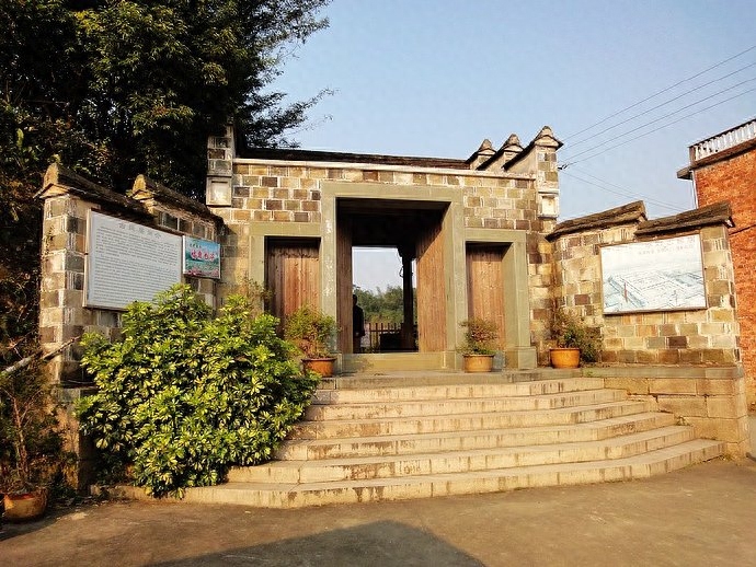 “凤岐古民居”的大门建在高高的台阶之上,四周高墙围起,远看仿佛一座城堡。