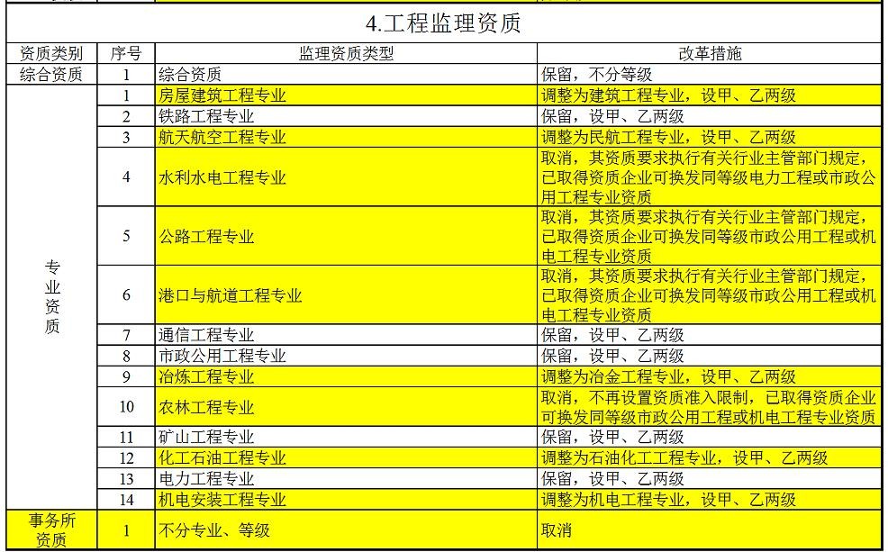 此次征求意见稿已是第四次通知,根据此次下发的征求意见稿,可以明确地看出,这次改革力度非常大,涉及多项资质取消及合并。