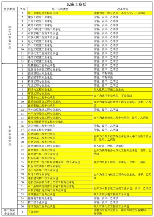 整合为1项综合资质、13项总包资质、18项专包资质、1项专业作业资质。