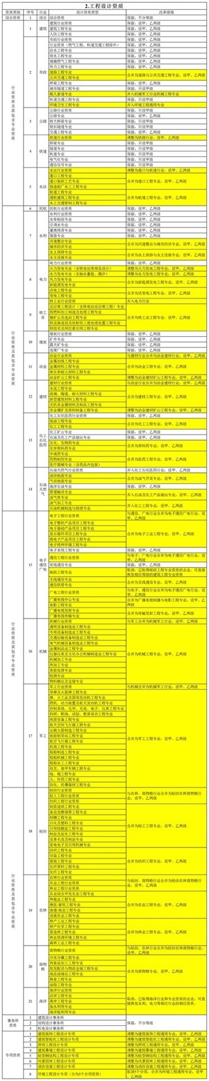 2、工程设计资质由 1 项综合资质、28 项行业资质、151 项专业资质、3 项事务所资质、8 项专项资质。
