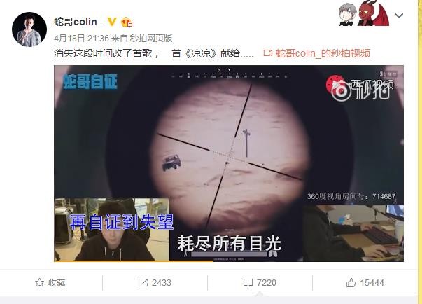 也许去年下半年,直播圈奉献给网友的“瓜”太多。所以在五五开和蛇哥之后,直播圈的实锤风暴慢慢偃旗息鼓。而这两位中心人物,自然也是被锤到了谷底。时隔72天,那位以15倍镜扬名的主播蛇哥,也就是斗鱼一哥二代目(一代目当然是五五开了)在昨晚更新了微博动态,自拍了一段视频:
