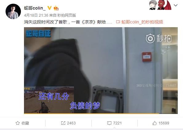 蛇哥表示:自己消失的这段时间改了首歌,一首凉凉送给···· 在这则视频里,蛇哥侧面承认了自己的错误。并且把自己的过往和忏悔改编进了歌曲《凉凉》。说实话,还挺好听? 至于蛇哥唱了些什么,小编将歌词写出来,供大家欣赏