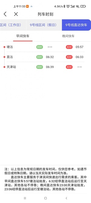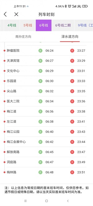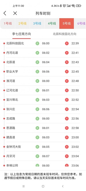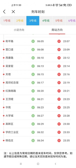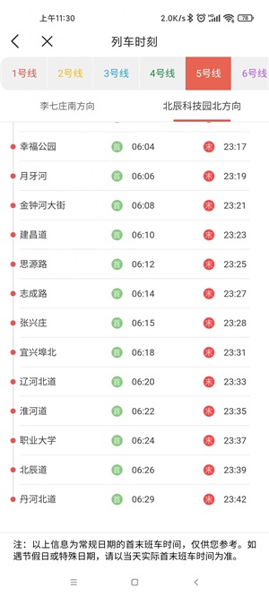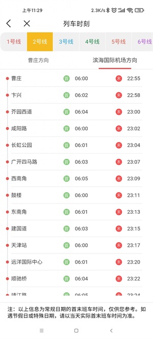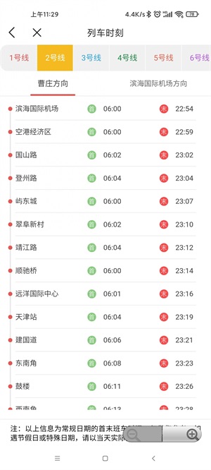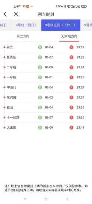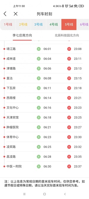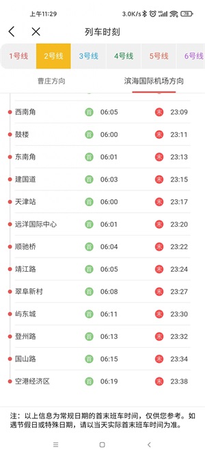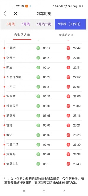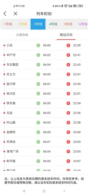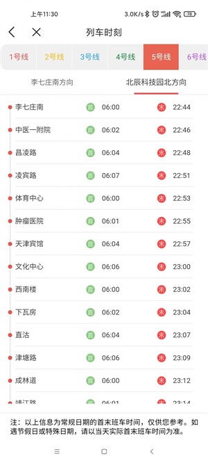 以下列车时刻表为已官方公布信息,常规日期首末班车时刻表,如遇特殊节假日、特殊保障期,请以天津地铁官方公布为准。