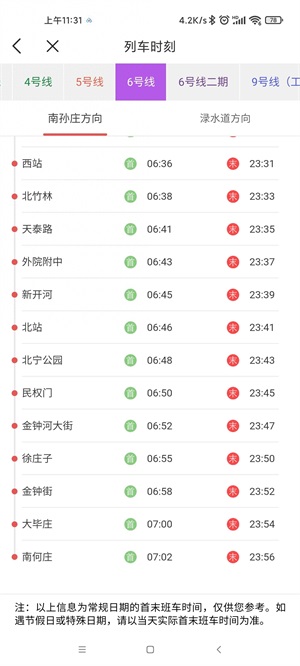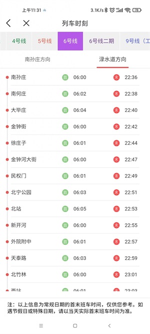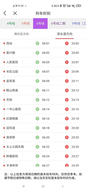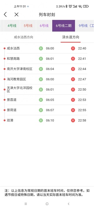 为了方便大家了解天津地铁6条线路首末班车时刻,逐条线路进行了汇总,方便大家取用。