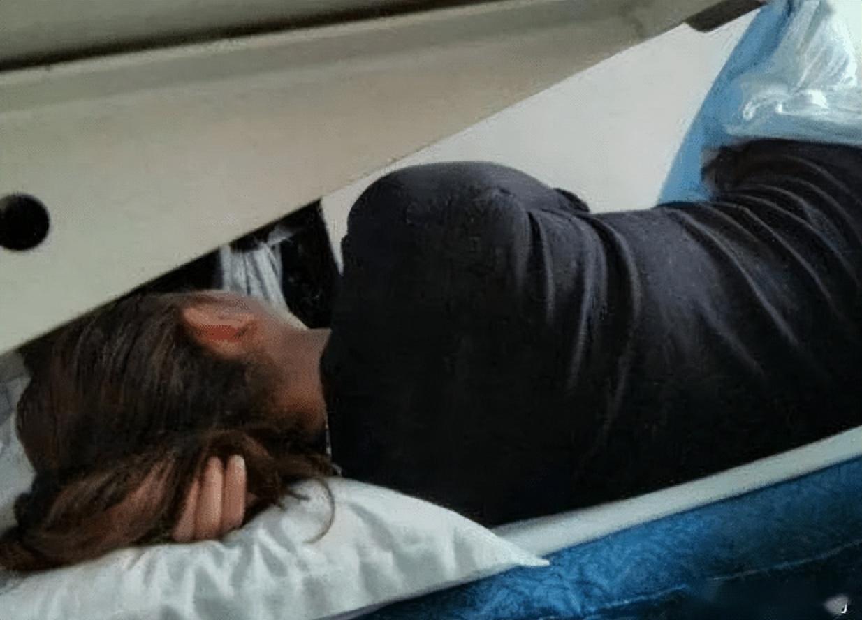 环顾四周乘客们都在睡觉,徐某顿时色心大起,悄悄爬上了小晴的床铺。