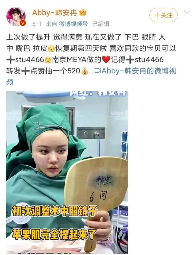 由于整容次数太多,韩安冉不得不时常在整形医院修复。