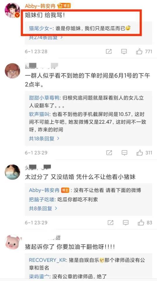 韩安冉更是在自己微博中煽动网友和粉丝大骂小猪及其现任“兜儿”女士。