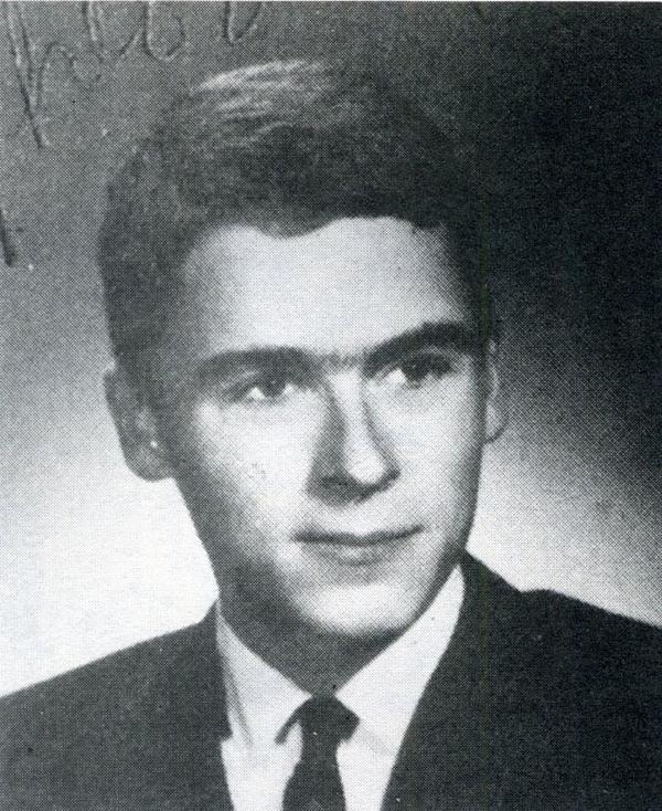 邦迪的高中时期也没有什么值得记忆的事情。他虽然不是一个孤僻的人,但也没有什么真正的朋友。他偶尔会犯一些小偷小摸的罪行,但都没有被严重惩罚。他的成绩也不算太差,但也没有什么亮点。他在1965年毕业后,进入了普吉特湾大学,主修中文。