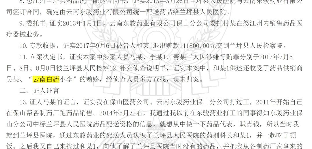 而在2016年、2018年、2020年,云南白药旗下公司及销售人员也曾多次牵涉行贿案,行贿对象包括原发改委价格司副巡视员、云南阜外心血管病医院原副院长、兰坪县医院药剂科科长等。