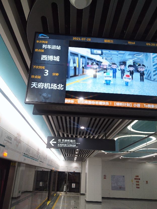 (1)从火车南站上车,一定要注意站台有两种列车,一种终点到西博城,另一列终点才到机场。以显视频为准,不要弄错了。