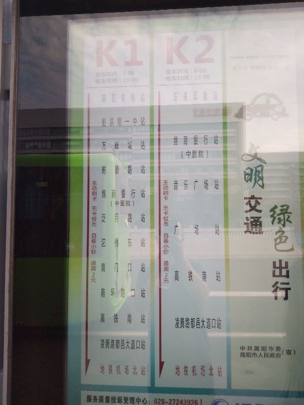 (4)回简阳有两路公交车,K1和K2,K1从南环线经过沱一桥到新城区,终点站新城党校。K2从西门经过沱二桥到新城区,终点站东来印象。两路公交车时间一个小时,路程60离左右,十分钟-十五分钟一班。请旅客根据自己情况选择线路,支持微信支付宝扫码,成都地铁公交和简阳公交可以切换。公交车简阳收班车时间晚上7点,机场地铁晚上8点。