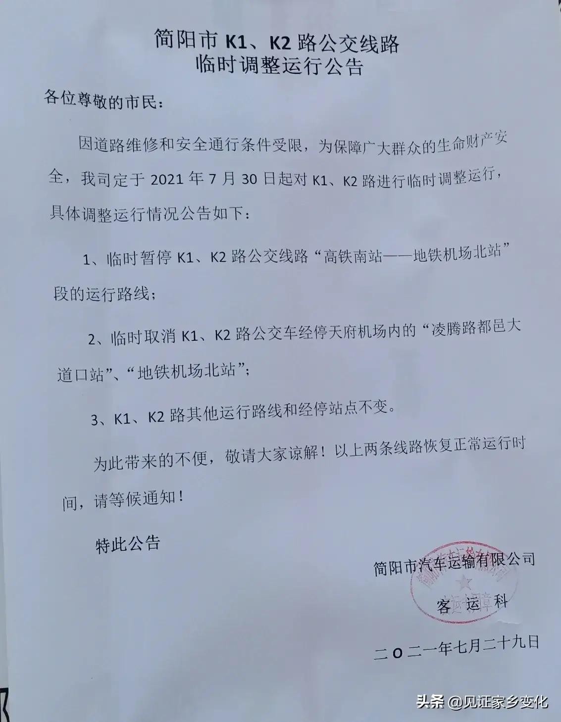 7月29日开始简阳K1K2暂时不开往机场,恢复时间等候通知。请回简阳的朋注意一下。
