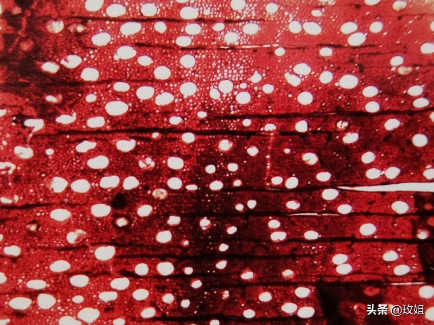 散孔材,心材红褐色,与边材区别明显,边材黄白色,生长轮不明显。管孔在放大镜下可看见,轴向薄壁组织放大镜下可看见。木射线放大镜下可看见,纹理直,结构细。