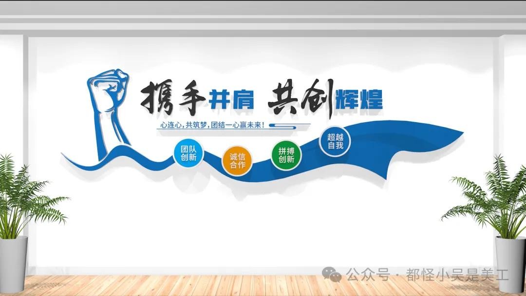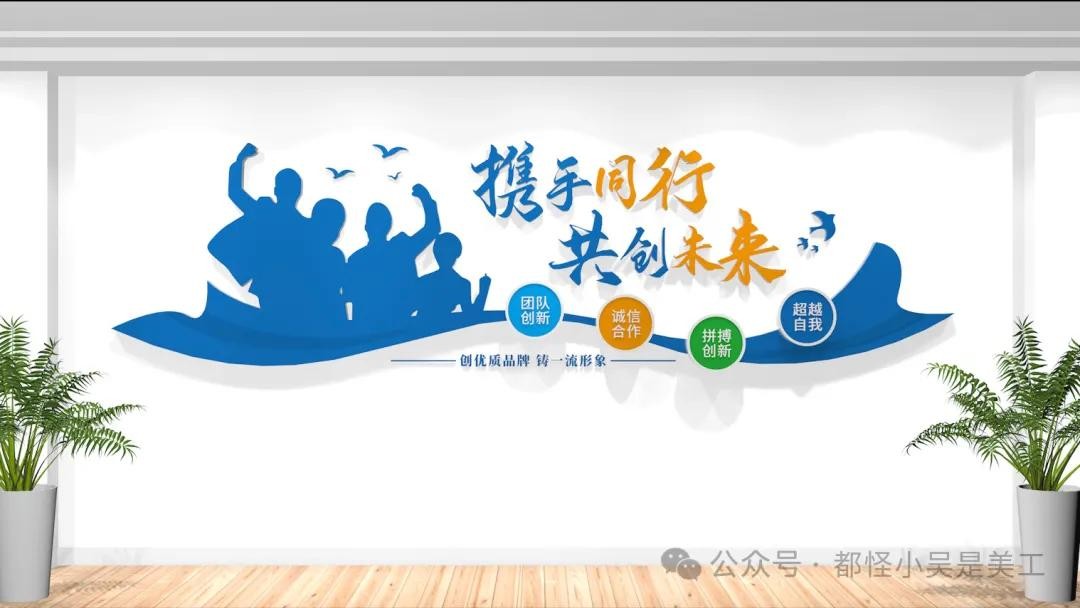 携手同行,共创未来,公司办公室励志标语文化墙设计