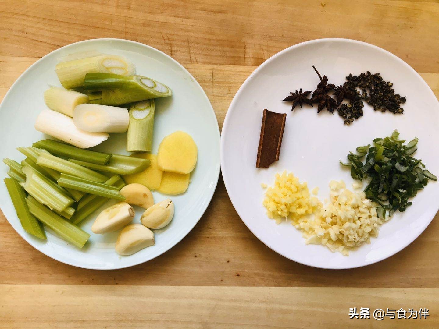调味油用料:油200克,大葱1整根,老姜1块,大蒜6掰,麻椒40粒,芹菜1棵,小八角3个,桂皮1小段(2厘米长)。