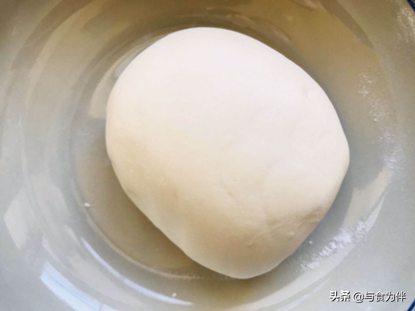 第二步,和面,面粉倒入盆里加入白砂糖10克,油10克先搅开,温水里加入3克酵母粉搅化搅匀,面粉里边倒入温水边搅拌至面絮状,和成面团后揉光滑,盖好发酵30到40分钟至面团的2倍以上大小。酵母粉放入温水里能快速帮助面团醒发,必须要搅化不能有颗粒。
