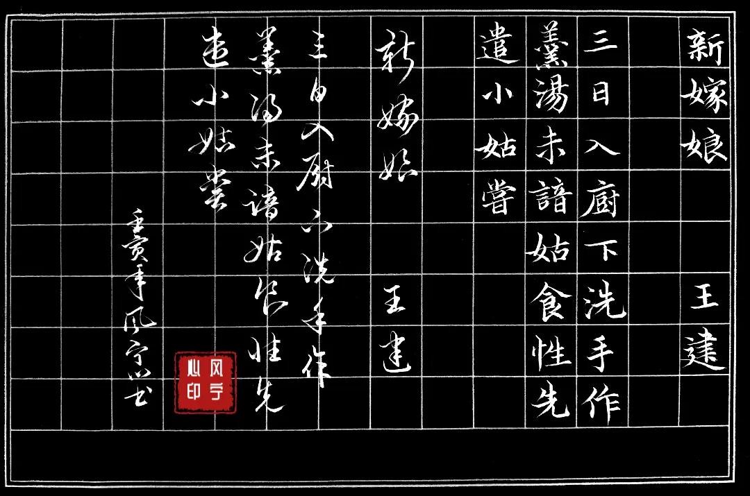 译文:过门三朝下厨房,洗手亲自作羹汤。