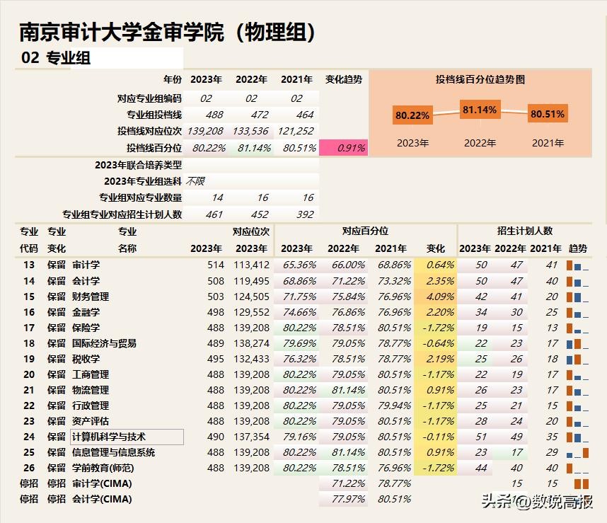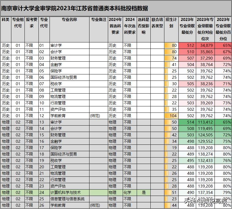 ■2024年,计算机科学与技术会受选科变更影响,会单独组成一个专业组招生,专业组投档线百分位会上升;而剩余专业组成的专业组投档线百分位相较2023年不会有太大变化。
