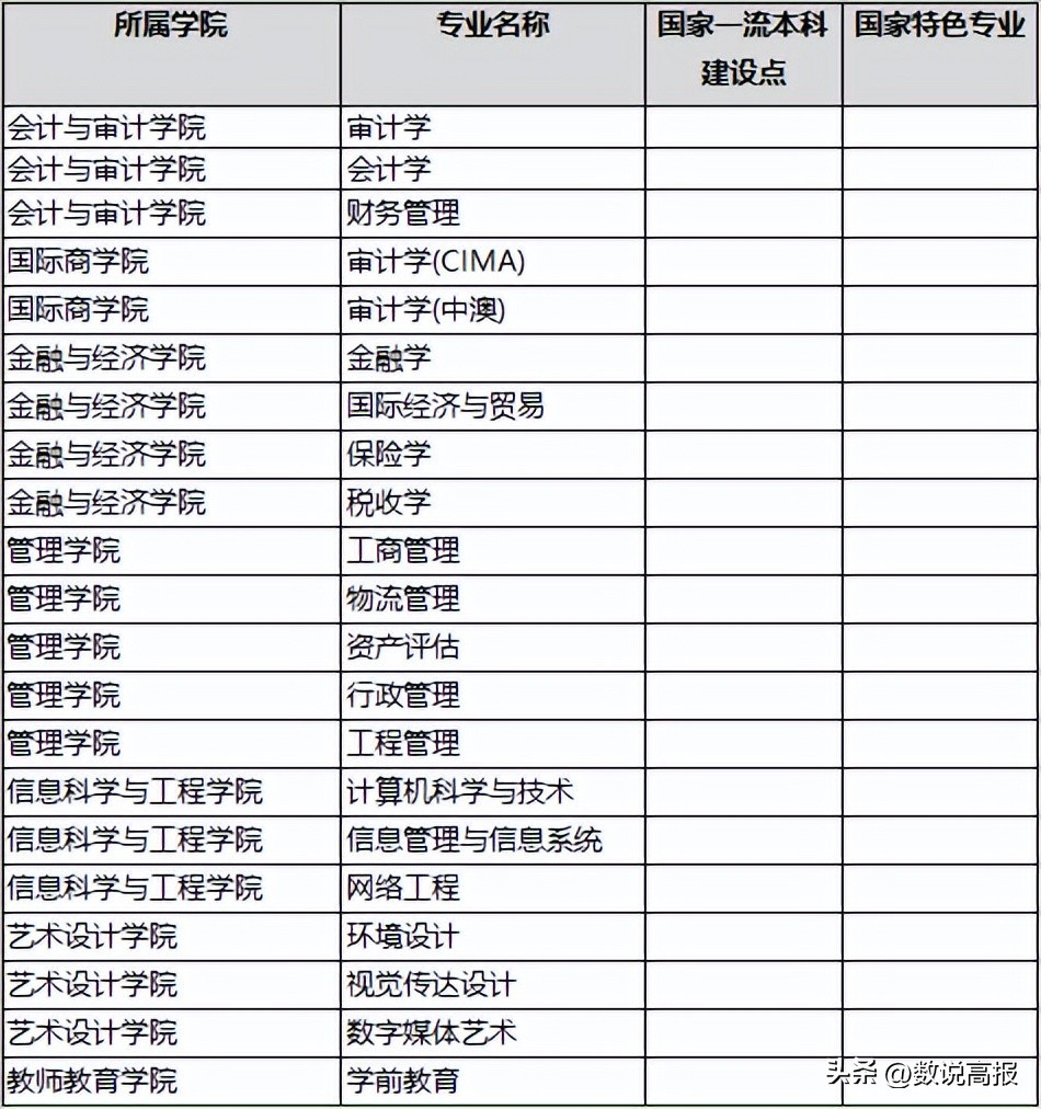 ■2023年,专业组审计学(CIMA)和会计学(CIMA)专业停止招生,其他专业设置没有发生变化;