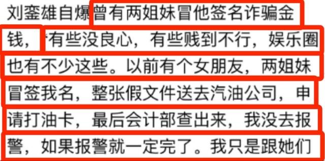 刘銮雄聊起前程往事,直言有些女友贱的不行。带着自己的姐妹,仿照自己的笔迹申请油卡。