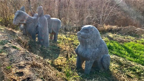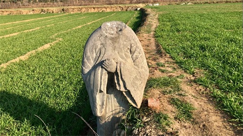 章懿李后陵的地面建筑早已悉数被毁殆尽,陵区的石刻石像,除神道两侧的望柱丢失之外,其它的基本都在,石像石刻的损毁也是非常严重,陵台还算完整,章懿李后其实就是历史有名的凄苦皇后李宸妃,宋仁宗赵祯的生母。