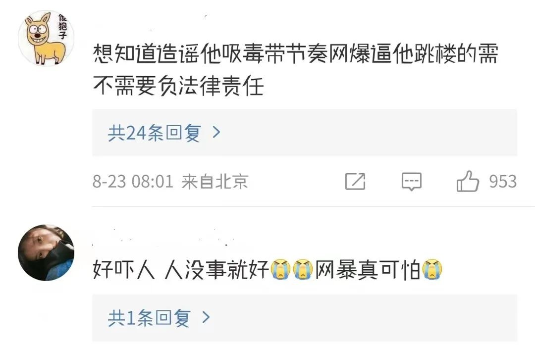 网暴将韩佩泉推向了深渊,很多网友都在为他抱不平,说,“网络暴力致人死亡难道不用坐牢吗?”、“键盘侠害死了多少无辜的人啊”、“想知道造谣他吸毒带节奏网爆逼他跳楼的需不需要负法律责任”。