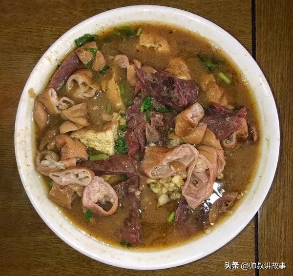 • 介绍:由炖好的猪肠、猪肺与火烧一同煮制,辅以炸豆腐片、卤汁,加入蒜汁、酱豆腐汁、香菜等调料,味道醇厚香浓,猪肠和猪肺软烂入味 。