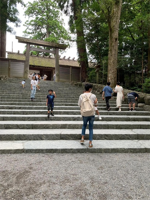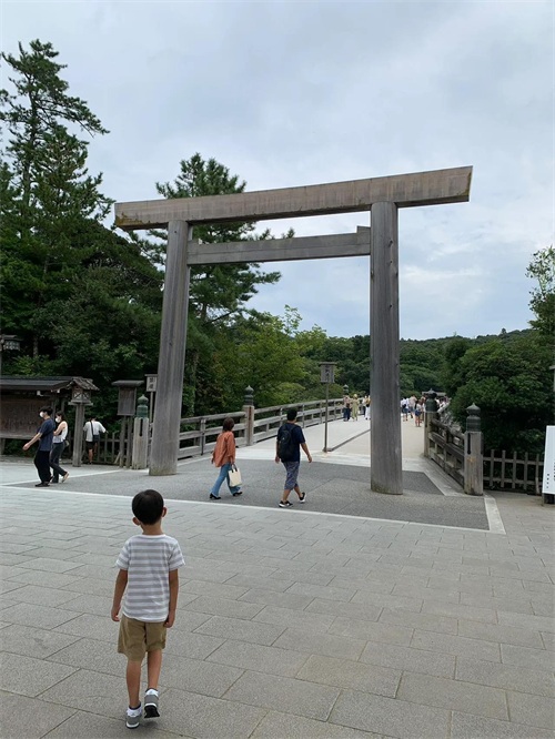 伊势神宫作为神道教最神圣古老的神道场所,自建造起就没有外国人能够进入,直到1957年后才对外国人开放.神道教也是日本唯一的本土宗教,信徒能占据日本人口百分之七十左右.下面这张图是神宫入口。门口守卫是日本的自卫队警察。这也是日本唯一一个由自卫队警察守卫的神宫.