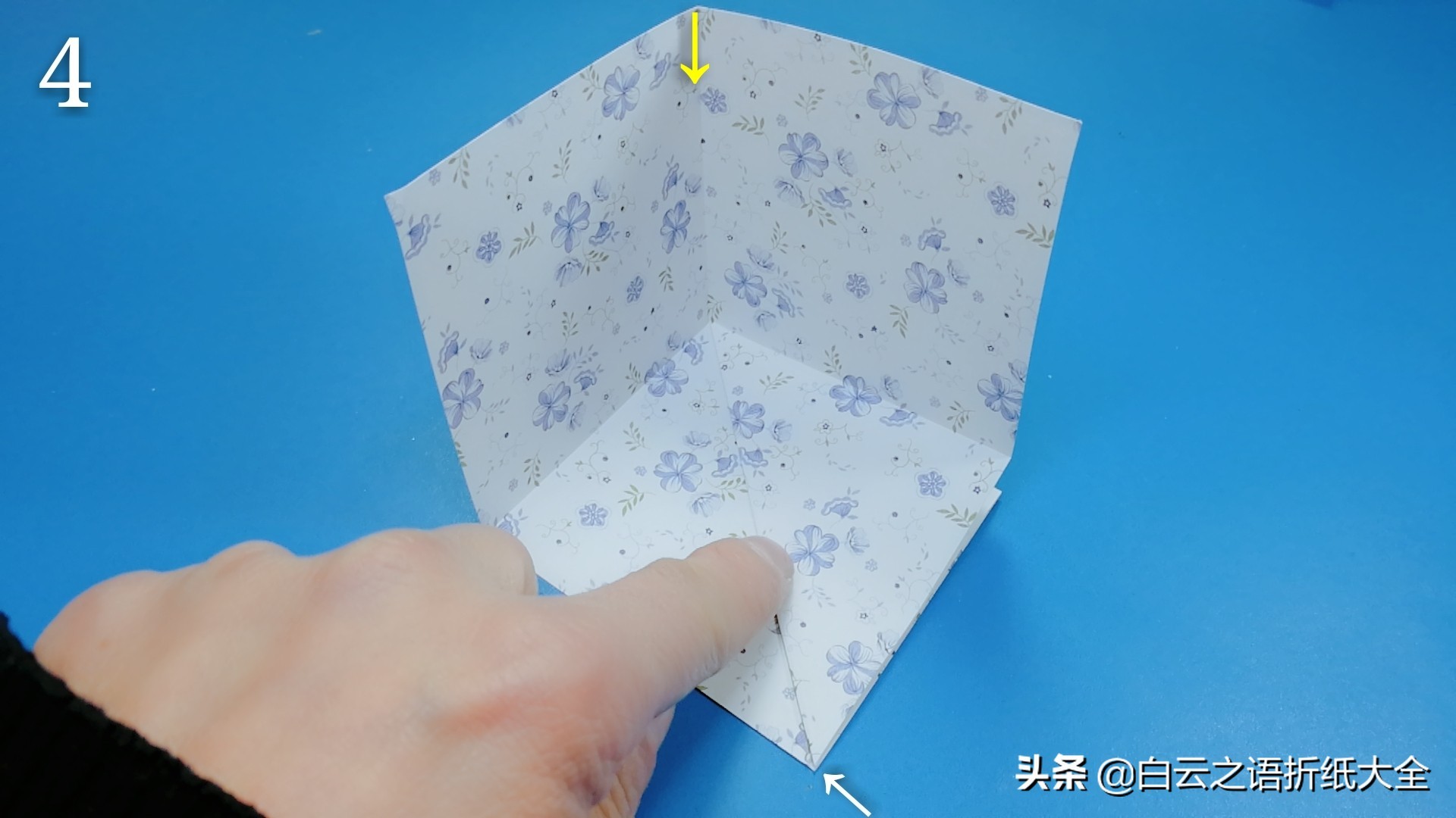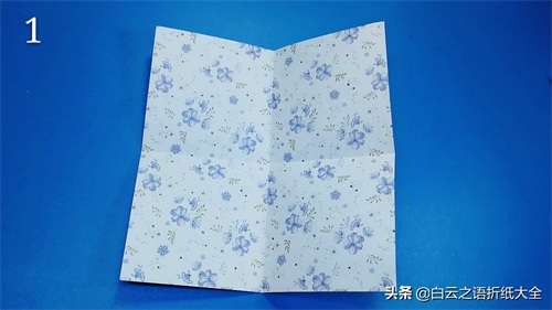 步骤1:我们拿一张15厘米的正方形纸,四边对折后打开,纸上留下“十字型”虚线。