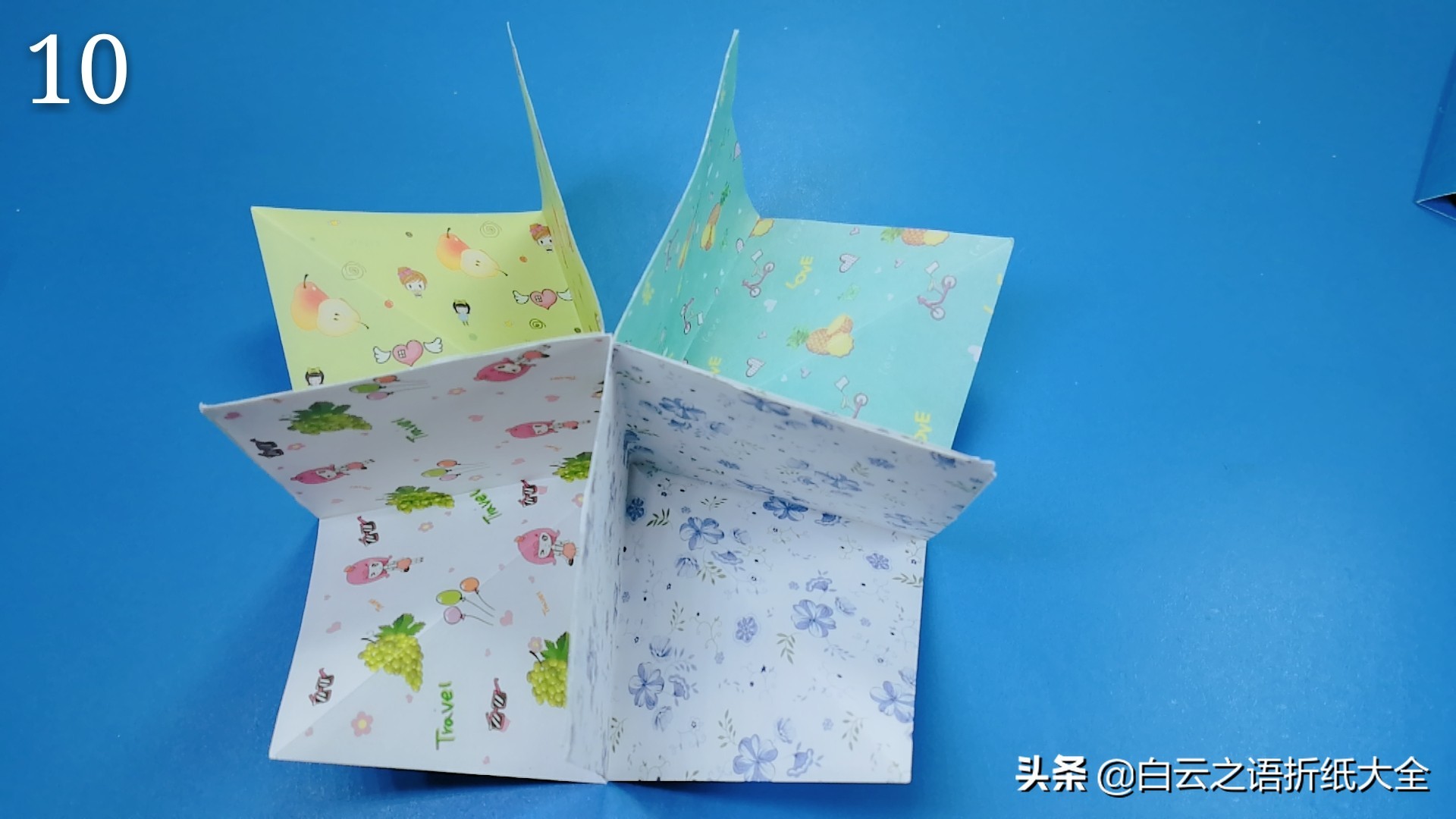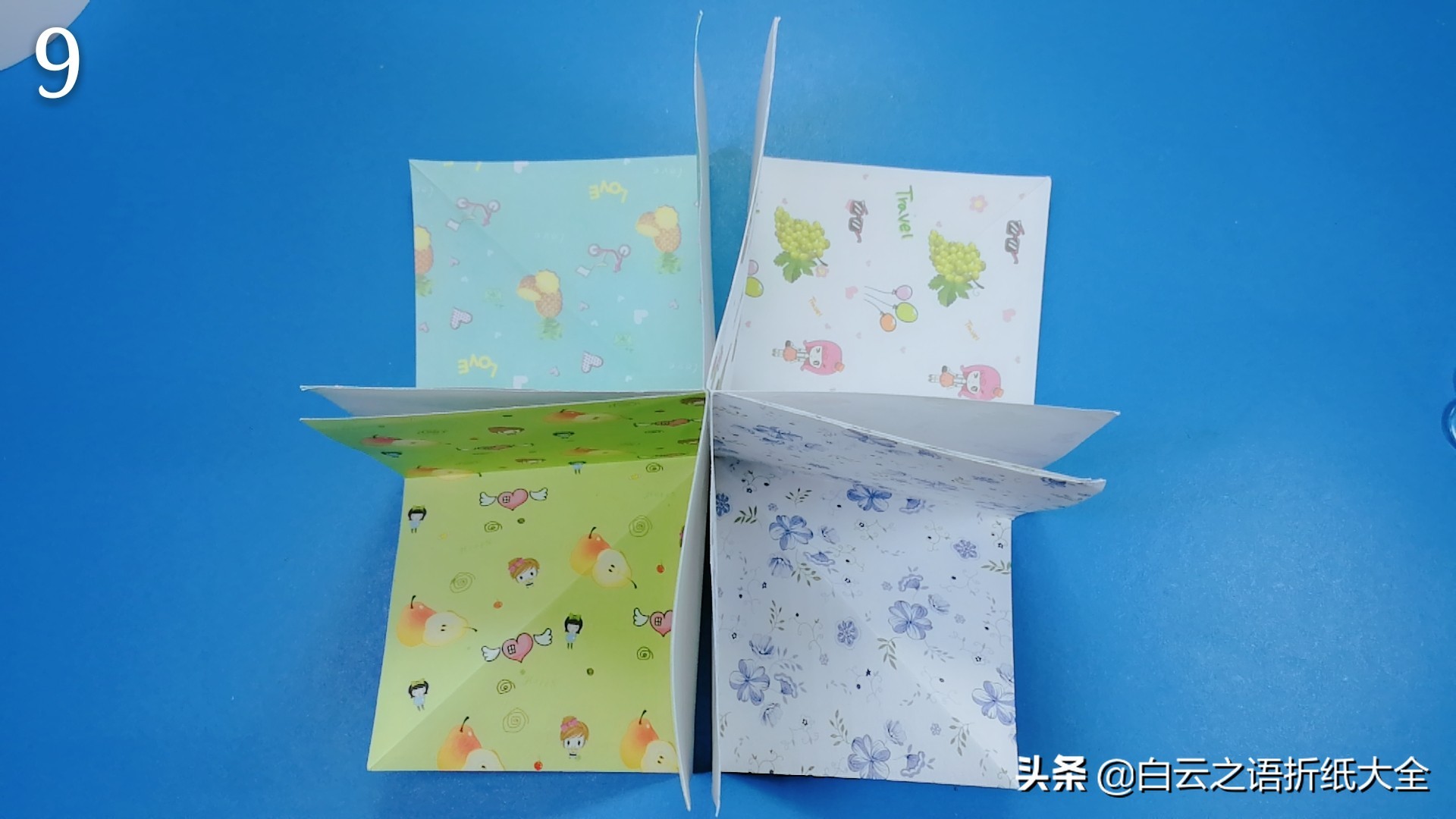 步骤9:我们一共要折出4个大小相同相册页,并按照图片把它们排列放好。