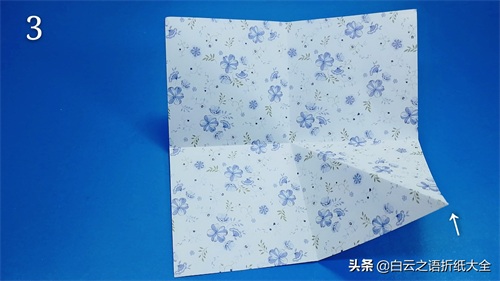 步骤2:我们把一个角进行对折,需要注意的是只对折到中心点过,也就是对折到纸的一半。