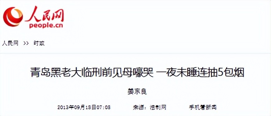 参考资料:青岛黑老大临刑前见母嚎哭 一夜未睡连抽5包烟--时政--人民网 (people.com.cn)