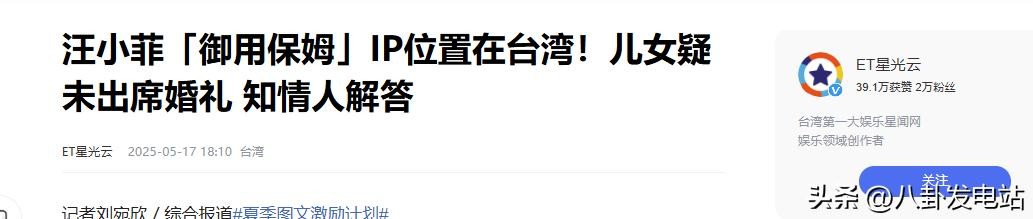 ET星光云 2025-05-17 汪小菲「御用保姆」IP位置在台湾!儿女疑未出席婚礼 知情人解答