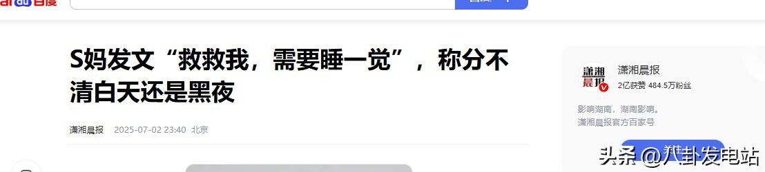 潇湘晨报2025-07-02 S妈发文“救救我,需要睡一觉”,称分不清白天还是黑夜