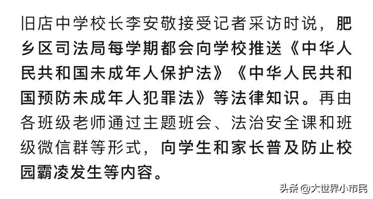 学校在此事件中也受到关注和指责。受害人在校期间长期遭受霸凌,而学校对此视而不见,案发后更是推卸责任,引起公众愤怒。目前,受害人王某某生前就读的肥乡区旧店中学教学秩序正常。